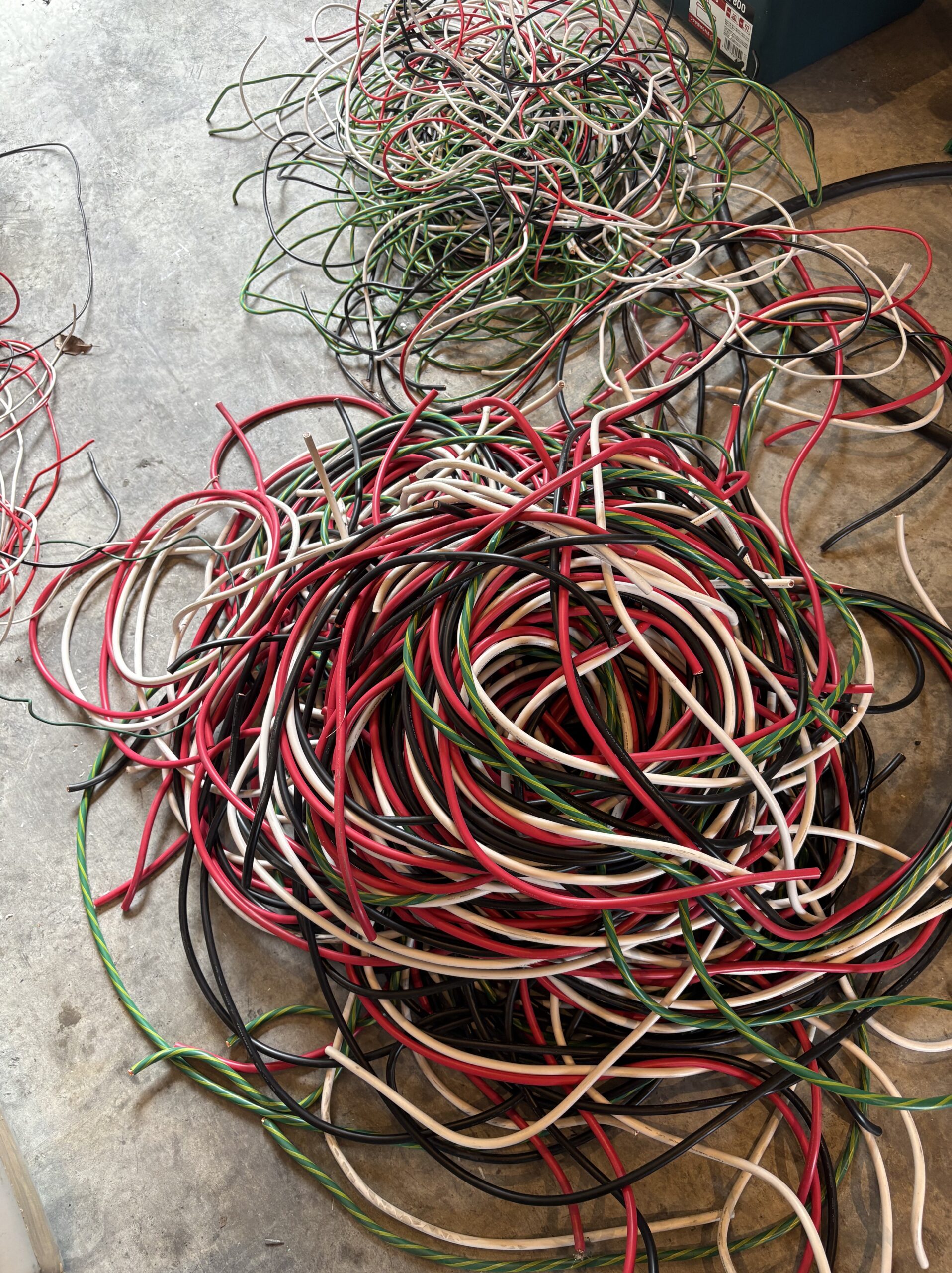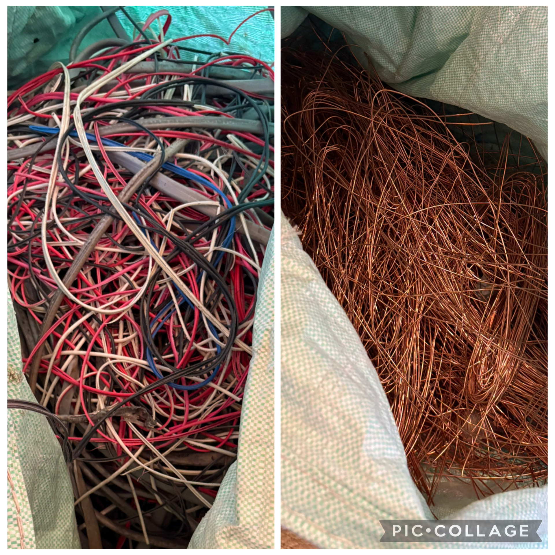 電線剥く作業になります。配線用機械に1本ずつ通していって手で剥く作業になりました😊