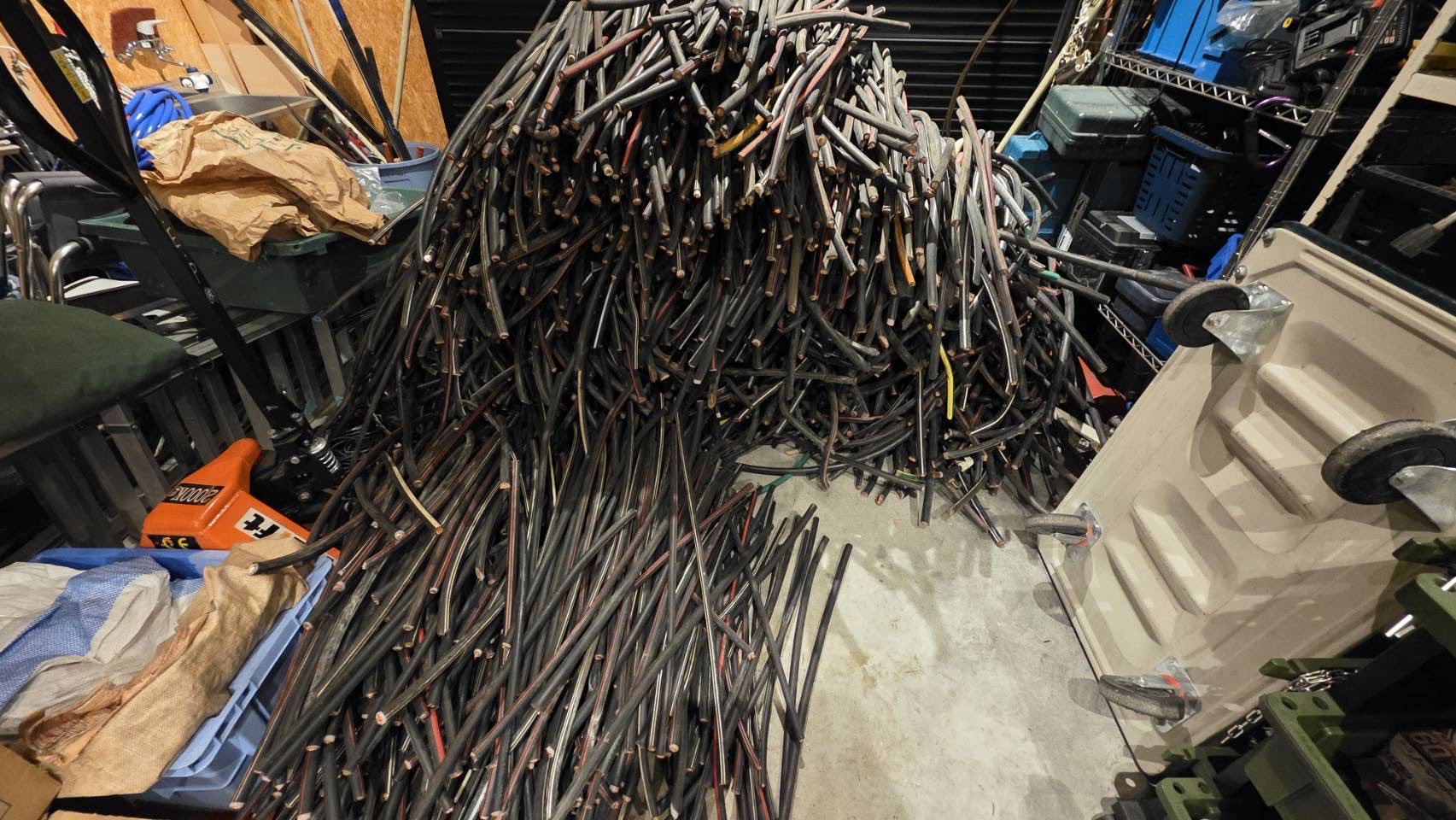 持って帰った時は大きい袋2つぶんだったのに、配線の皮を剥くだけで袋1つ分になりました✌️
